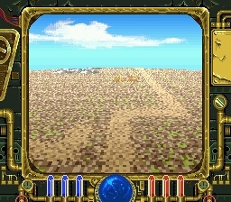 Die letzte große Enttäuschung ist die extrem pixelige Mode 7-Weltkarte, die man nicht frei erkunden darf, sondern auf der der Mech vollautomatisch einen linearen Pfad entlang stapft, nachdem man seinen Zielort angeklickt hat. Zu erkunden gibt es hier also auch nichts. Es gibt noch nicht mal versteckte Gegenstände in den Siedlungen oder gar so etwas wie Sidequests.
