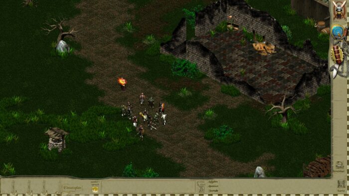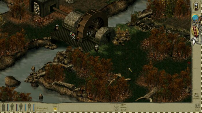 Die Charaktersprites wurden gut umgesetzt und bieten nette Animationen. Besonders cool ist, dass man angelegte Rüstungsteile und Waffen auch optisch erkennt. Wenn man seinen Charakter mit einer fetten goldenen Rüstung bestückt, dann sieht man das auch. Und geplünderte Feinde liegen dann halt halbnackt im Matsch – so soll es sein!