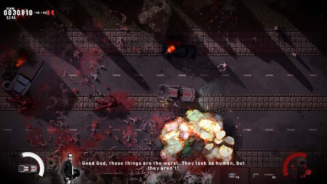 Nicht zuletzt für die Zerstörung verantwortlich zu machen sind natürlich die verschiedenen Waffen, welche ihr im Spielverlauf einsammelt. Immer wieder findet ihr Geld für Upgrades oder gar neue Schießprügel, die euch das Leben in der Endzeit erleichtern. Dazu kommen noch Werkbänke innerhalb der Level, an denen der Spieler die Waffen aufrüsten kann, etwa durch einen Laserpointer, der euch das Zielen erleichtert (speziell beim Spielen mit dem Pad gut!), oder eben die obligatorische Schusskrafterhöhung zum schnelleren Erledigen der Meute. Diese setzt sich im Übrigen nicht nur aus den gleichen Seelenlosen zusammen – auch Variationen werden geboten. Schnellere oder auch stärkere Exemplare kommen auf euch zu, um euch ans Leder zu gehen. Habt ihr dennoch einen Level gemeistert, erwartet euch eine kleine Statistik mit euren Daten. Neben den Combokills führen auch noch gefundene Geheimnisse zu einem guten Score. Auch die Anzahl von getöteten und der insgesamten Zombies trägt zu einem Highscore bei. Dieser kann praktischerweise direkt durch eine Rangfolge per Internet mit anderen Spielern für den jeweiligen Abschnitt verglichen werden. Feine Sache für Highscorejäger!