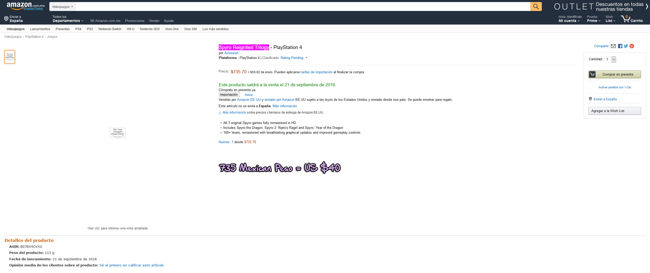 Ganz spruchreif ist es zwar noch nicht, doch mittlerweile besteht eigentlich kein Zweifel mehr daran, das Activision die in den vergangenen Monaten immer wieder heiß gehandelten Remaster der ersten drei Spyro Spiele ankündigt. Nicht nur finden sich mittlerweile auf diverse Amazon Listungen, auch sind bereits erste Screenshots von der Spyro Reignited Trilogy genannten Sammlung geleakt. Laut Amazon Mexico werden die Remaster der PlayStation 1 Klassiker am 21. September 2018 für PlayStation 4 und Xbox One erscheinen, NOCH ist dies aber nicht offiziell bestätigt.