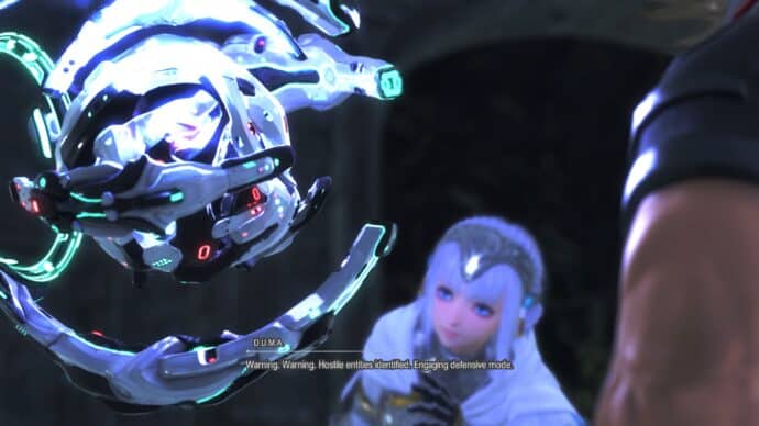 Doch noch bevor euer Team zu voller Stärke herangewachsen ist, erhaltet ihr DUMA, einer kugelförmigen Drohne, die eure Bewegung sowie Verteidigung erheblich verstärkt. Die Manöver der Drohne sind einer speziellen Taste zugewiesen. Wenn ihr diese gedrückt haltet, erzeugt sie eine Barriere um euren Charakter, die sogleich Angriffe abwehrt. Wenn ihr sie in Verbindung mit einer Richtungseingabe benutzt, kann DUMA sogar einen weitreichenden Dash ausführen. Diese Attacken können sogar dafür sorgen, dass Feinde betäubt werden und für einige Augenblicke nicht einsatzfähig sind.