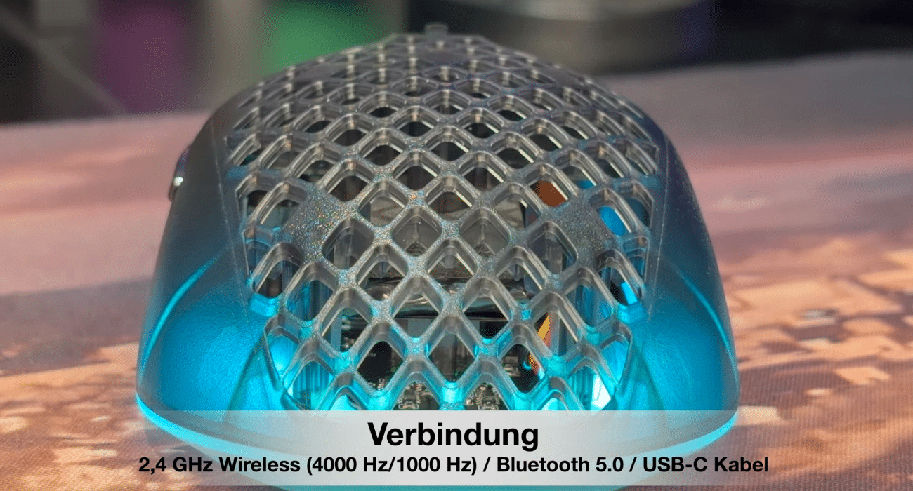 | Produkt-Features | 2.4 GHz, 26000 DPI, 4k wireless polling liefert, Bluetooth 5.0, Ergonomishces Design, Leicht, Leitcht, Wasserresistent |