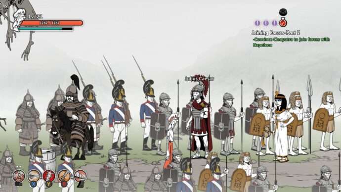 Wenn euch die Handlungsbeschreibung jetzt total wirr und durchgeknallt vorkommt, dann liegt das ganz einfach daran, dass sie es auch tatsächlich ist. Super Daryl Deluxe bezieht seinen Reiz und Humor in erster Linie aus dem bizarren Setting und der bescheuerten Rahmenhandlung. Wer immer mal miterleben wollte wie sich Ebenezer Scrooge, der Protagonist aus Charles Dickens‘ Weihnachtsgeschichte, mit einer Gruppe von Goth-Kids verbündet, um eine Geisterjäger-Organisation zu gründen oder der zusammen mit Napoleon Bonaparte, Julius Cäsar, Cleopatra und Dschingis Khan die Goblin-Festung eines Mountain Dew-süchtigen Strategie-Nerds erobern will, der wird in diesem Spiel auf seine vollen Kosten kommen.