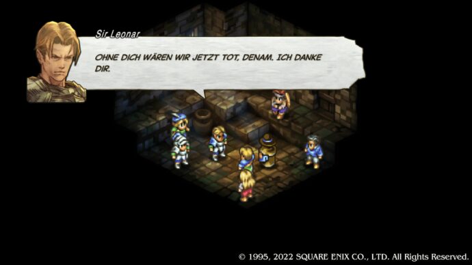 Übrigens ist Tactics Ogre: Reborn ein relativ Textlastiges Spiel. Denn auch die Story ist ziemlich prominent und wird mit vielen Dialogszenen erzählt. Diese sind inszenatorisch recht primitiv, da man stets auf die Sprites und Portraits der sprechenden Figuren schaut. Dennoch hat mich die Geschichte um einen brutalen Konflikt in diesem recht klassischen Fantasy-Reich ziemlich investiert. Nicht zuletzt, da nach und nach ein paar wirklich interessante Figuren auftauchen und man mit eigenen Entscheidungen den Verlauf der Handlung beeinflussen kann.