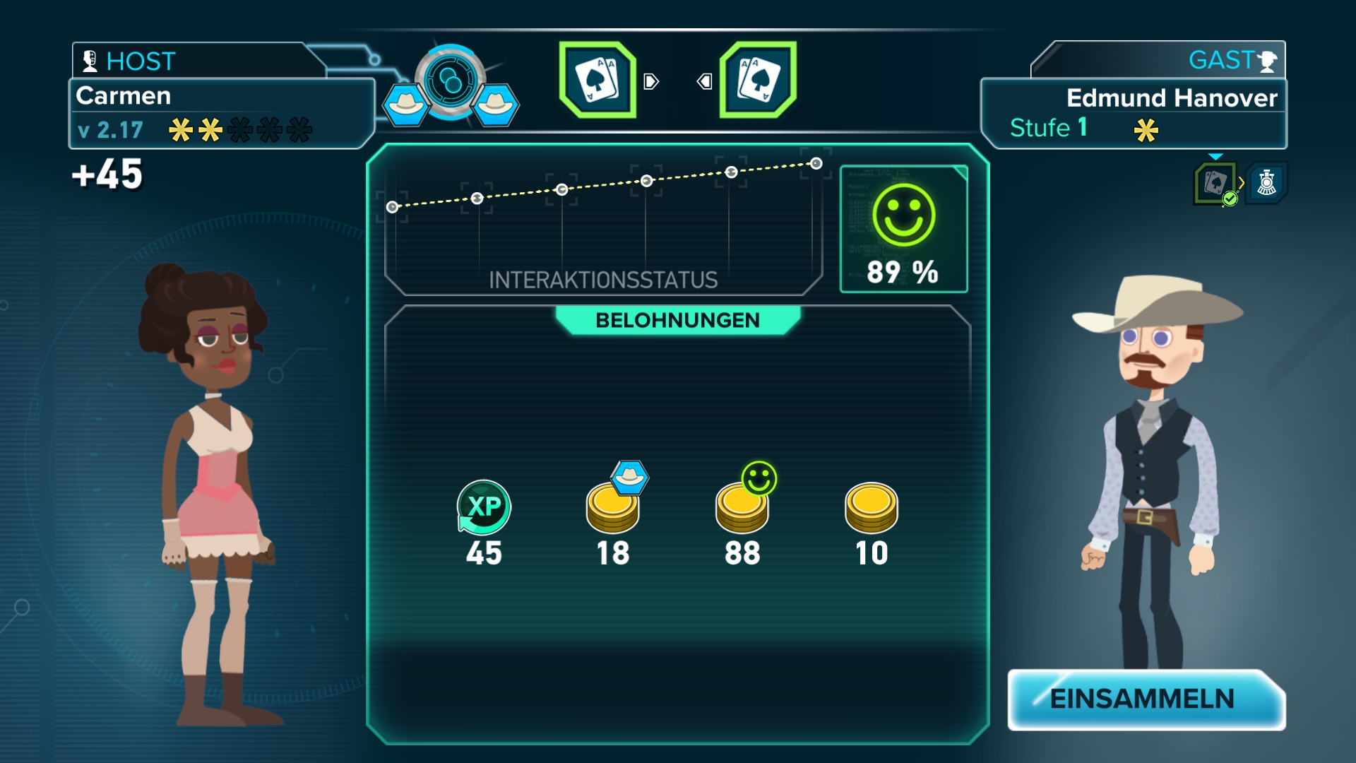 Als „free“ Player ist man mitunter aber ganz gut unterwegs, findet immer Aktionen, die einem das Gefühl von Fortschritt geben und man kann sein virtuelles Westworld kontinuierlich verbessern und ausbauen. Hier treffen die Entwickler einen Punkt, der viele Spieler in eine Suchtspirale führen könnte. Man ertappt sich viel zu oft bei dem Gedanken, nur noch eine Interaktion zu machen, nur noch eine Aller letzte. Hinzu kommen mehrtätige Events, die mit Crafting-Material für einzigartige Hosts winken, die man nicht verpassen möchte und dadurch zum Spielen verführt wird.