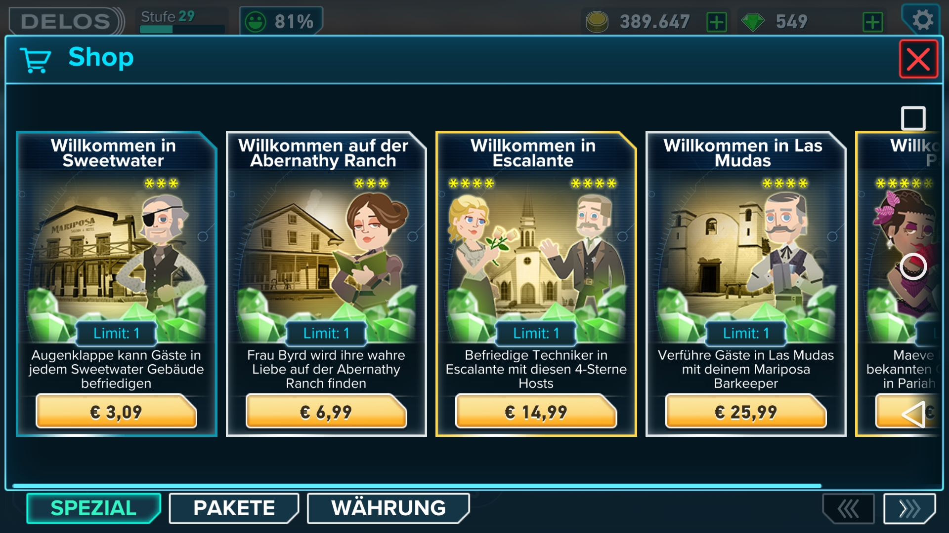 Anders als erwartet, ist Westworld Mobile wirklich ein Vorzeigemodell, wie Free2Play auf dem Smartphone auszusehen hat. Man hat stets die Möglichkeit an seinem Park weiterzuarbeiten, ganz ohne lästige Energiebegrenzungen oder Wartezeiten. Einzig die Zeit, bis zum Ende einer Interaktion bremst den Fortschritt aus. Zudem verzichten die Entwickler hier komplett auf Werbeeinblendungen, bieten aber im Gegenzug auch keine Möglichkeit, durch Werbevideos Premiumwährung zu verdienen, wie man es aus zahlreichen anderen „kostenlosen“ Mobile-Titeln kennt.