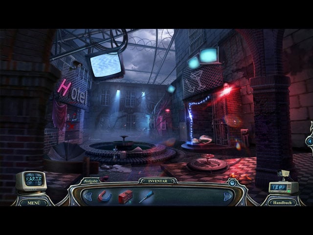 Wer bereits erste Erfahrung mit Wimmelbildern aus dem Hause astragon und Big Fish sammeln konnte, wird sich sofort zurechtfinden und alle Einstellungen binnen weniger Sekunden erledigen. Kurz darauf werden erste Szenen zur Einleitung abgespielt, die zwar qualitativ nur noch bedingt zeitgemäß sind, dafür aber die Handlung anschneiden. Ist die Sequenz automatisch oder manuell dem Ende zugeführt, geht es sogleich daran, erste Schritte einzuleiten. Wie in jedem Wimmelbild heißt es, Dinge ins eigene Inventar zu verfrachten, die nützlich erscheinen. Doch bricht Haunted Hotel: Ewigkeit leicht mit diesen Konventionen zu beginn. Stattdessen geht es ins erste Wimmelbild über, welches von euch verlangt, in einem Aktenkoffer mehrere Gegenstände ausfindig zu machen. Die gewünschten Objekte sind namentlich benannt und inmitten verschiedener unbrauchbarer Dinge versteckt. Ein paar korrekte Klicks und schon ist das gewünschte Utensil zusammengesetzt, welches zum Weiterkommen benötigt wird.