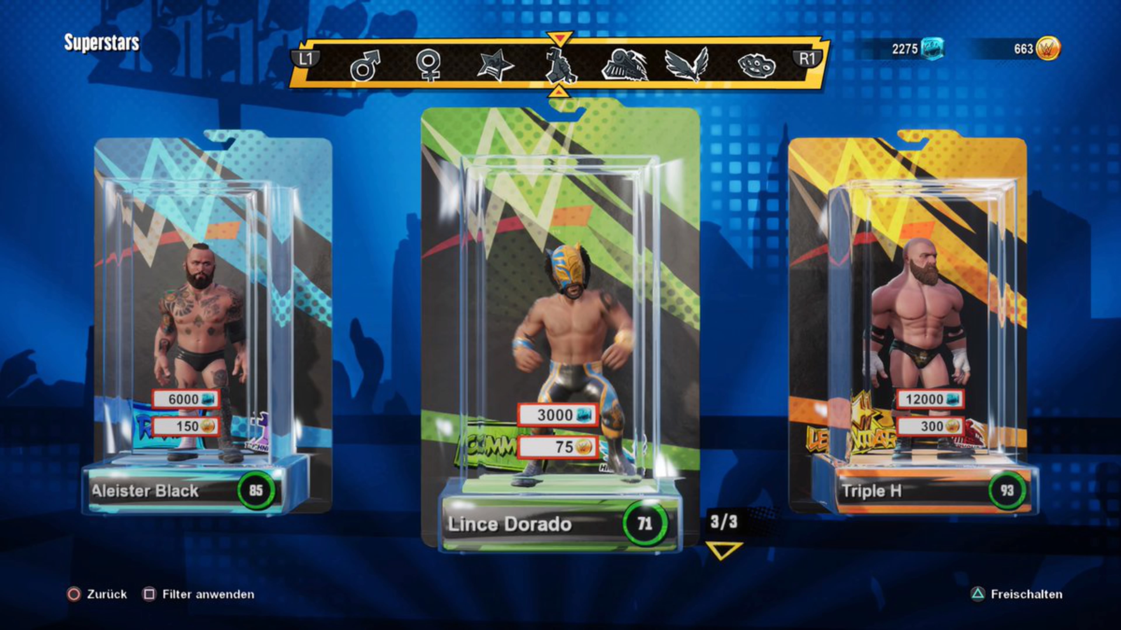 Im Spiel kann man sich zahlreiche Wrestler freischalten. Diese sind wie Spielfiguren in Plastikverpackungen verstaut und werden geöffnet, sobald man die jeweilige Ingame-Währung investiert oder zum realen Geldbeutel greift. Wie bereits erwähnt, dauert das Erspielen ziemlich lange und an jeder Stelle werden einem die Mikrotransaktionen unter die Nase gehalten. Das schadet dem Spielerlebnis, weil es den Eindruck vermittelt, der Entwickler wolle nur an das Bargeld der Spieler kommen.