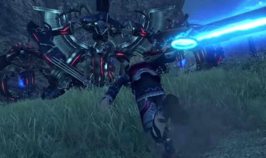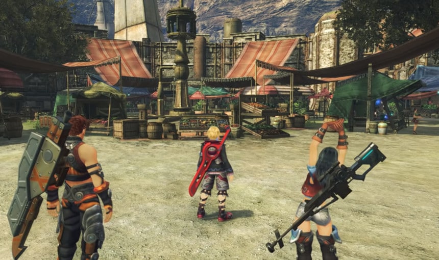 Doch zurück zum Anfang. Der einstige Kampf der Titanen wird nun durch die Völker, die auf ihnen leben, weitergeführt. Die Mechonis greifen in regelmäßigen Abständen das friedliche Volk der Homs an, die aber mit tapferen Soldaten standhaft bleiben. Einer dieser tapferen Recken besitzt eine mächtige und geheimnisvolle Waffe, mit der es ein Leichtes ist, die mechanischen Feinde zu bezwingen. Doch der Held kann diese Waffe nicht länger führen, da sie langsam Besitz über seinen Körper und Geist ergreift. Dunban, der erste Hauptprotagonist, verabschiedet sich nach dem letzten Einsatz von dem mächtigen Schwert Monado. Doch die Angriffe der Mechons wollen einfach nicht enden und so wechselt durch ein tragisches Ereignis das Monado den Besitzer. Ein junger Held, der vom machtvollen Schwert auserwählt wird und in der Kolonie 9 lebt, trägt es nun in der Hand. Shulk muss jetzt die Welt mithilfe dieser sehr ominösen Waffe verteidigen, die ihm sogar noch ermöglicht, schreckliche Visionen aus der Zukunft zu empfangen, die er dadurch ggf. abwenden kann.