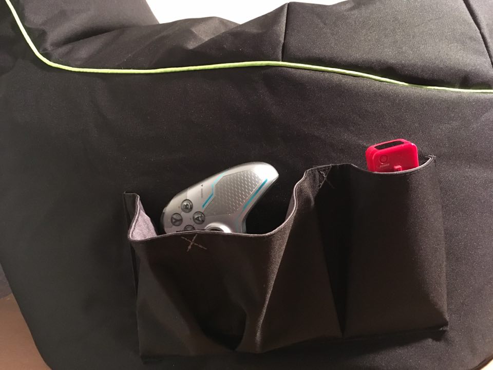 Der hauptsächlich schwarze Sitzsack ist weit ab von dem, was noch vor wenigen Jahren als Weihnachtsgeschenk-Highlight galt. Mit einer plumpen Form gibt sich die Sitzgelegenheit bei Weitem nicht zufrieden, stattdessen besticht er mit Design und Bequemlichkeit. Zuallererst sei gesagt, dass der Sitzsack eine wirklich angenehme Rückenlehne hat, die dazu einlädt, sich regelrecht fallen zu lassen. Sofort wenn man den Sitzsack einnimmt, verteilt sich die Füllung leicht, ohne aber an Beständigkeit im unteren Teil zu verlieren. Das Füllmaterial (EPS-Perlen) passt sich ideal der Sitzposition an und verleiht dadurch ein angenehmes Gefühl beim Spielen. Dies sorgt für eine komplette Entspannung, ohne Körperregionen auszulassen. Gerade der Rücken wird geschont und kann einen harten Arbeitstag hinter sich lassen.